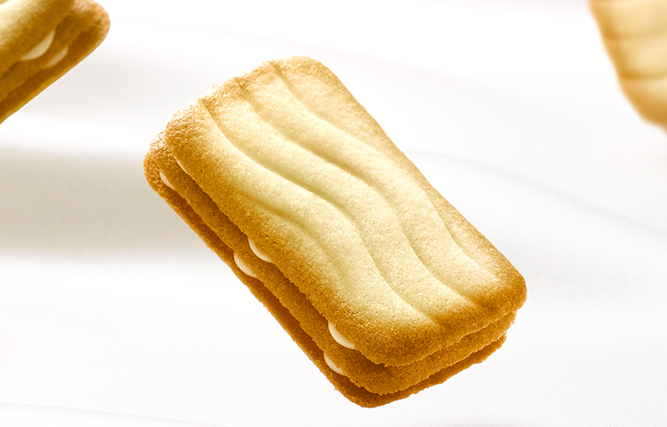 is a three-layered langue de chat cookie with generous lashings of white chocolate